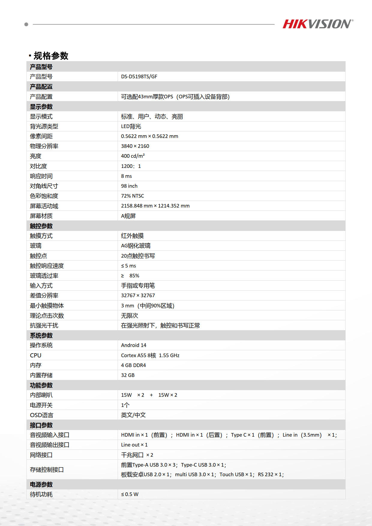 型       号: DS-D5198TS/GF