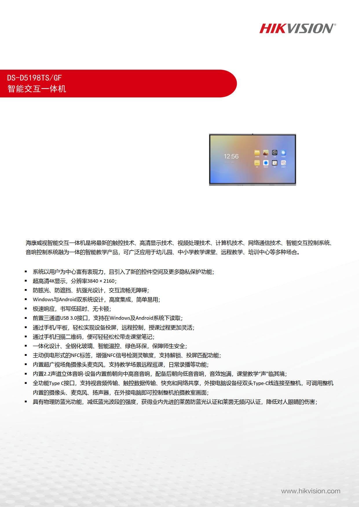 交互一体机 海康威视 DS-D5198TS/GF 含ops 投屏器