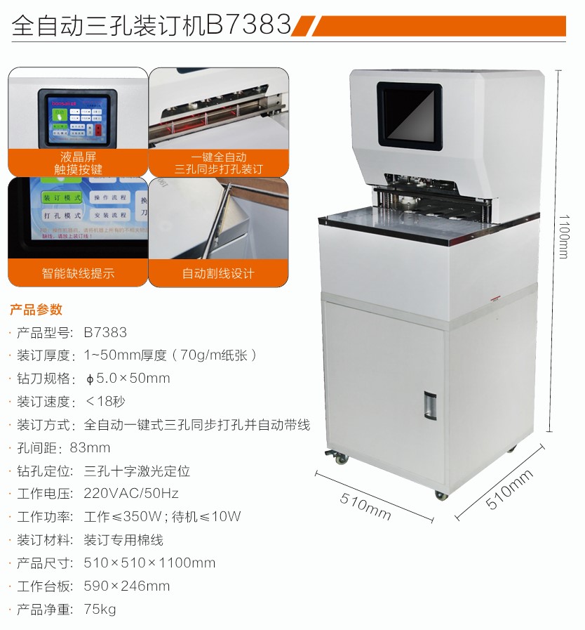 盆景 B7383全自动三孔装订机 商用
